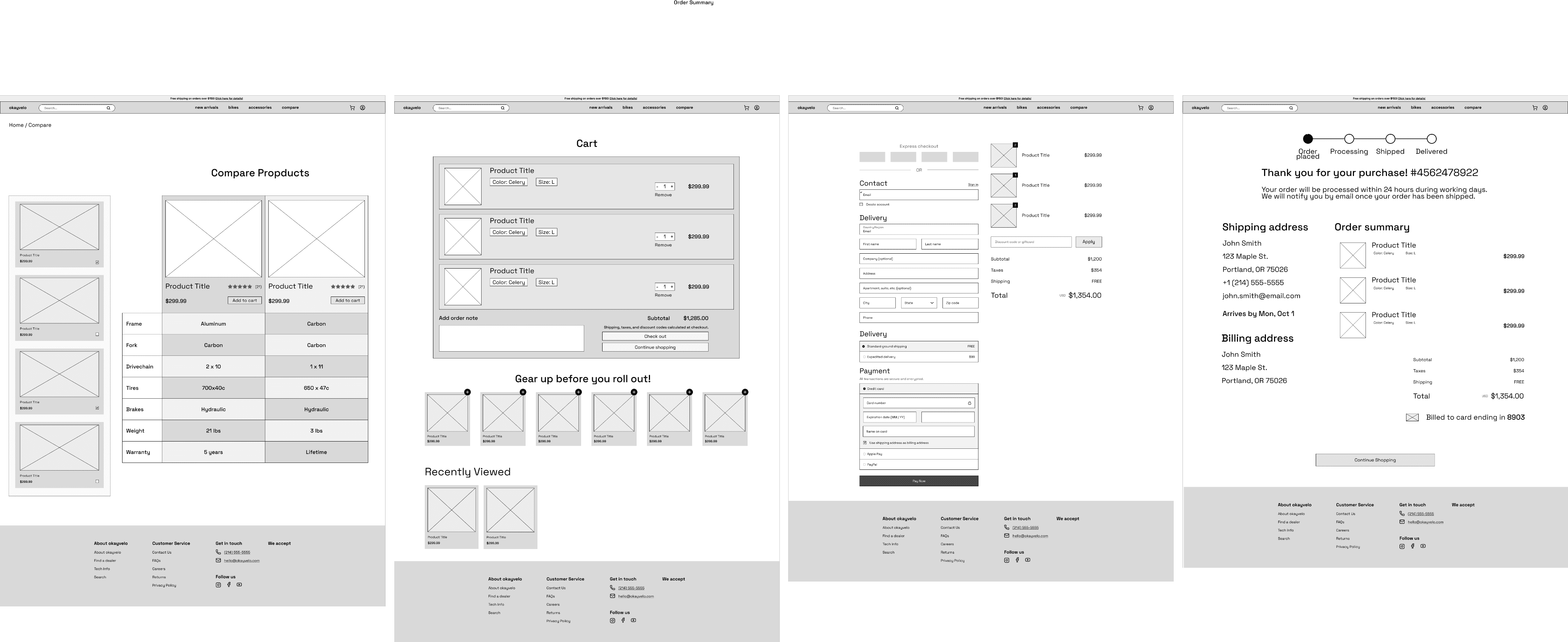 Guided by research insights and my primary persona, I explored ways to make bike shopping simpler and more intuitive. Early sketches focused on clear navigation, a two-bike comparison mechanic, and a checkout flow that reduced friction.