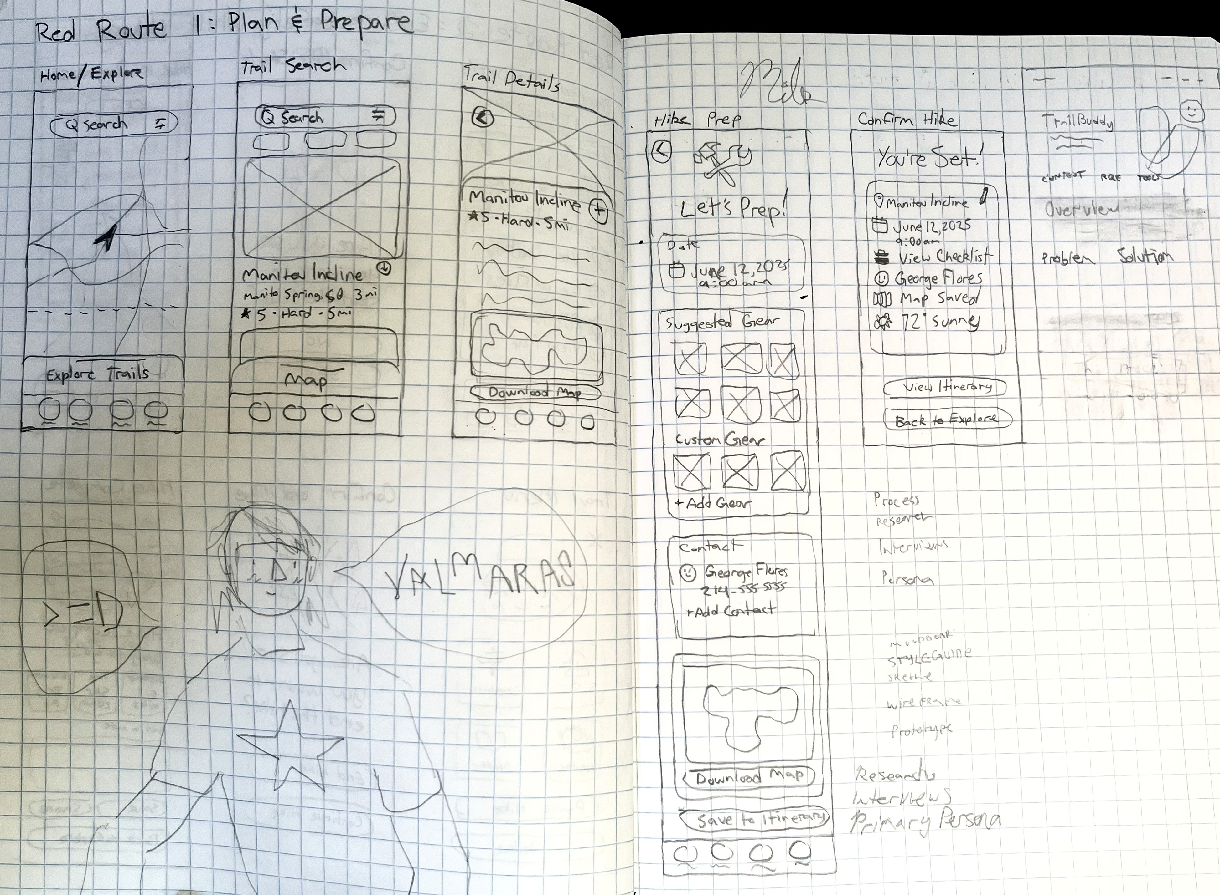 To design TrailBuddy, I combined secondary research with in-depth interviews to understand both the landscape of hiking tools and the lived experiences of solo hikers. My goal was to uncover what hikers truly need to feel prepared, confident, and safe on the trail.